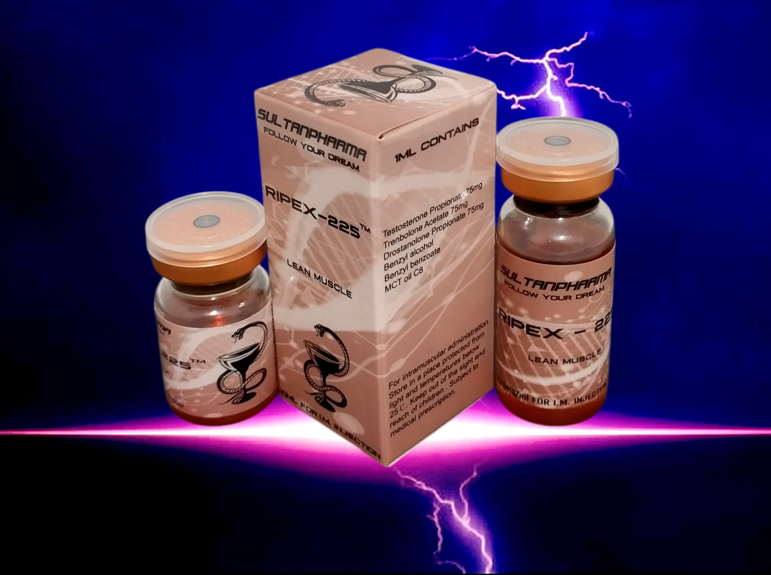 Ripex 225 este o combinatie formidabila alcatuita din trei esteri diferiti de steroizi cu eliberare rapida ( Testosteron Propionat , Trenbolon Acetat , Drostanolon Propionat ) , fiecare dintre ei intr-o concentratie de 75mg/ml , oferind in total o concentratie de 225 ml per mililitru .